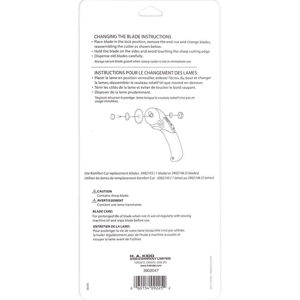 This cutter can be used either left or right handed. Truly reversible. Just remove the blade and re-build it to suit yourself. Ergonomic soft-grip handle made from moulded rubber for comfortable cutting, while reducing fatigue. Retractable blade guard for safety when carrying to quilt class or just for storage at home.