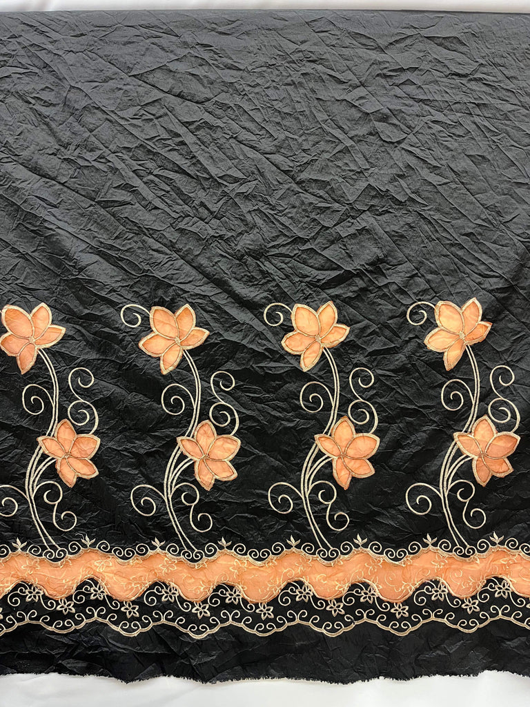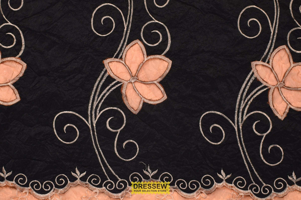 Basque Crinkle Taffeta - Embroidered Border Black / Copper