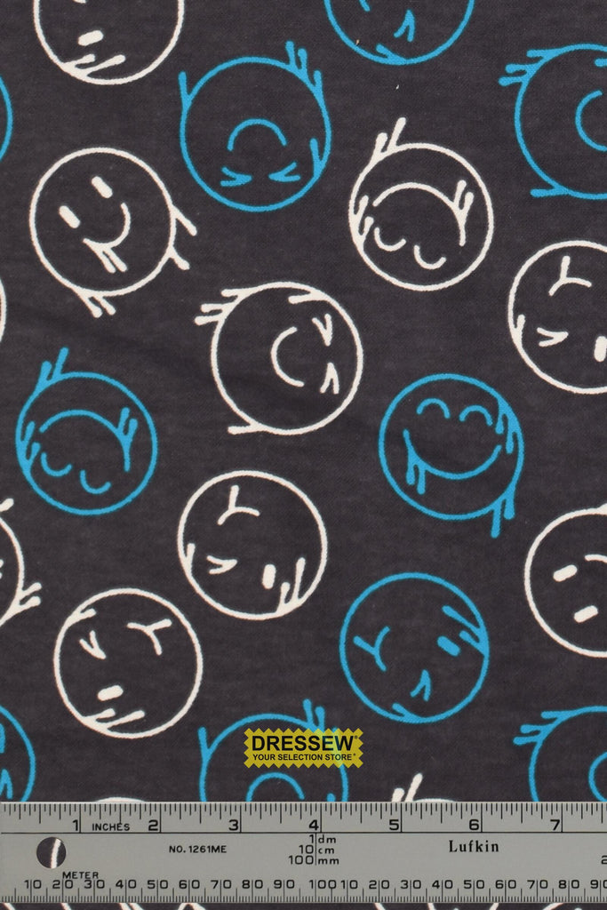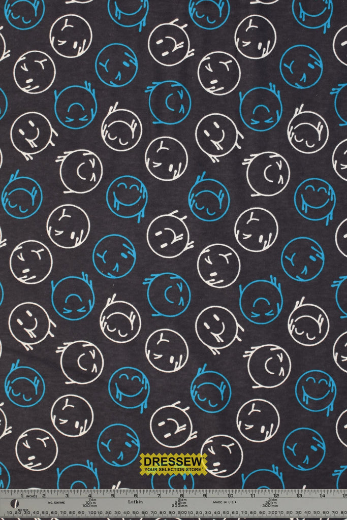 Graffiti Smiles Flannelette Charcoal / Multi