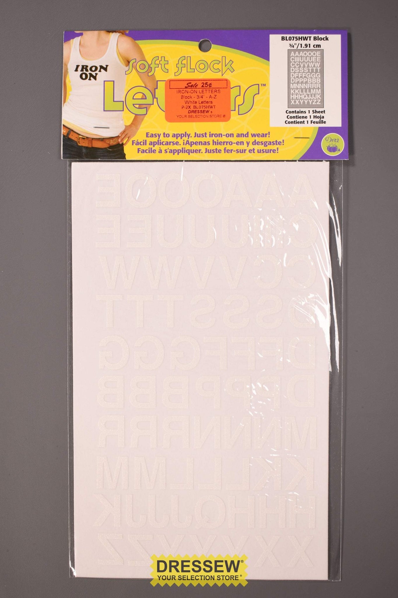 Iron-On Letters Block - 3/4" - A-Z White Letters
