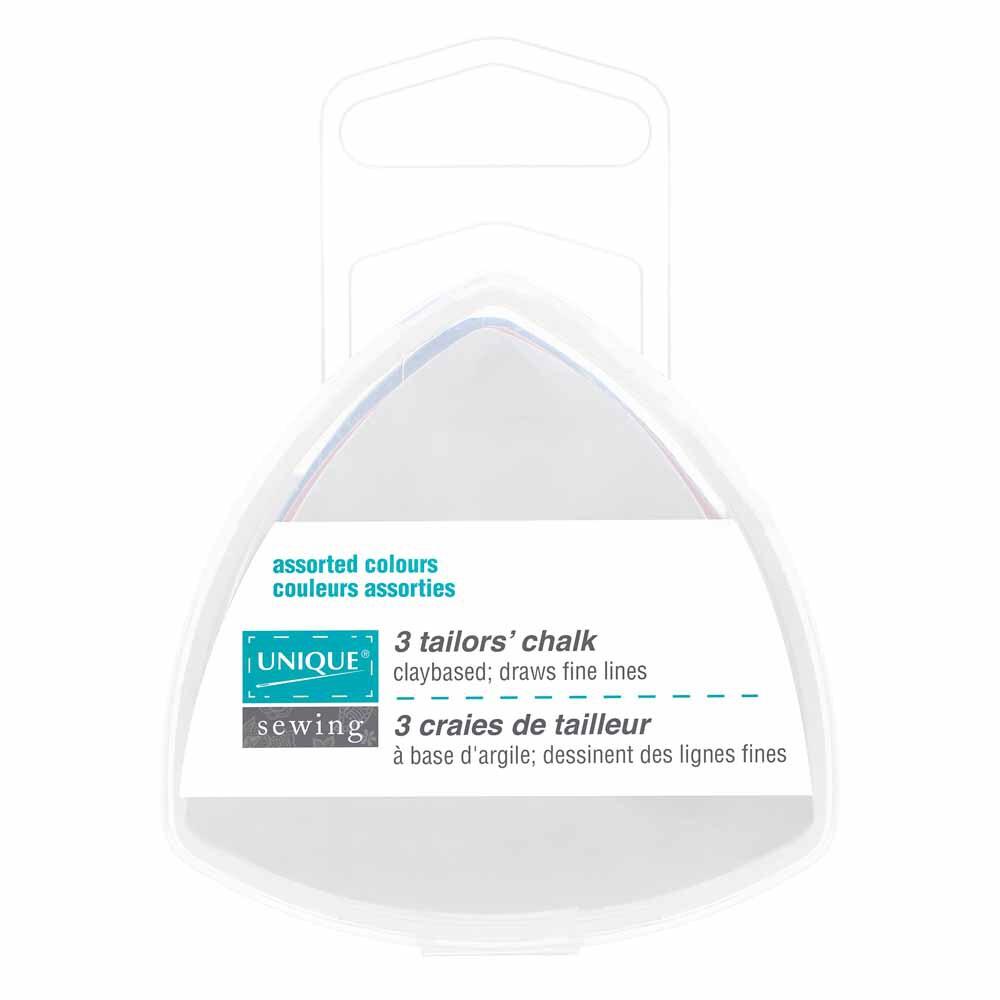 Clay based chalk for making fine lines. Brushes off easily after use. This tailor's chalk comes in 3 colours for use on every colour fabric. It comes in a plastic container for storage and to prevent chalks from breaking. We always recommend testing on a scrap of your fabric first.