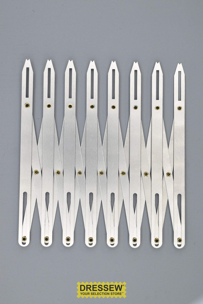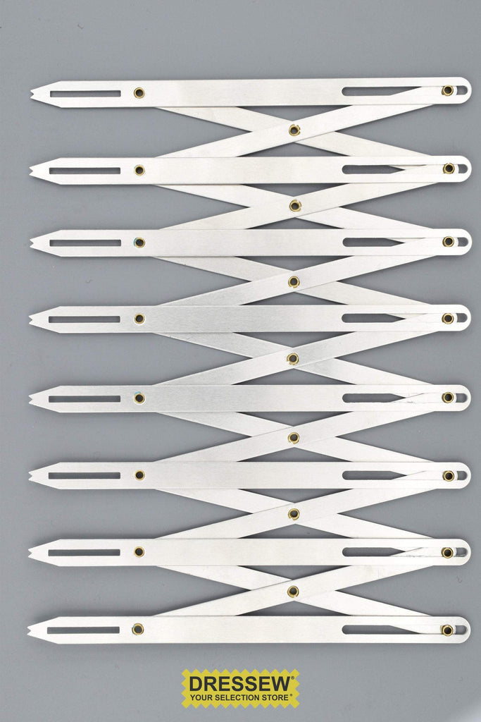 This Expanding Sewing Gauge is perfect for shirring, smocking, buttons, eyes, drapery pleats, tucks and gathers, hems, seams, pleats and more. Provides fast and accurate measuring. Quick and easy to use. Simply lay it over the garment and expand it to the desired length for perfectly measured equal distances and accurate spacing. Expands to a total of 24".