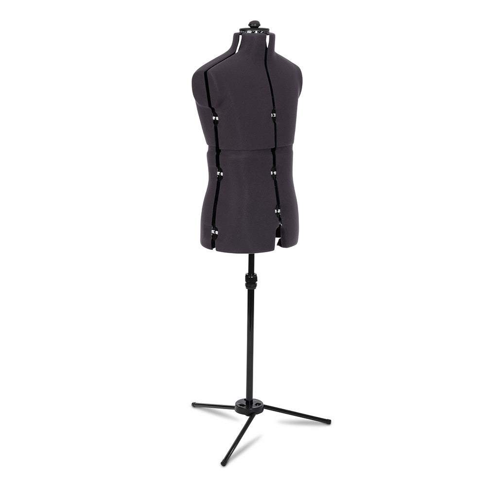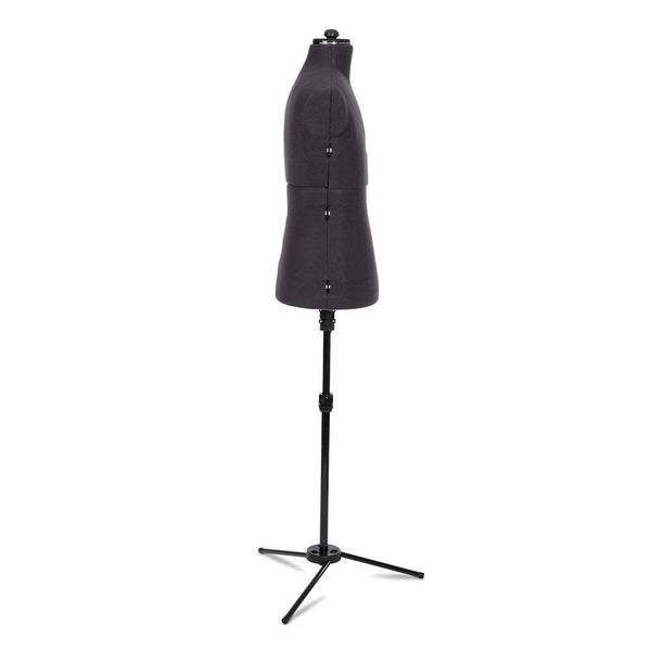 The body is covered in a charcoal grey nylon fabric with a foam backing. This allows you to pin fabrics and patterns to the torso.