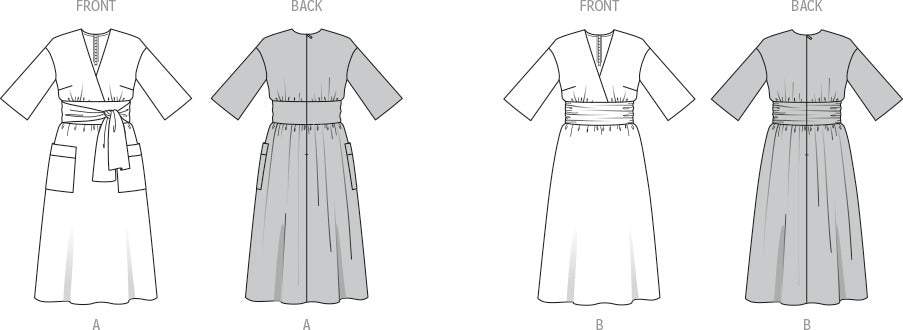 Discover this Burda style dress pattern for your spring look! The two variations offer a versatile wrap-style midi dress that pairs perfectly with sneakers or ballet flats. It looks great in vibrant colours and romantic floral prints. The second variation features a wrap effect, and a waist-cinching look in airy lightweight viscose, with a pattern reminiscent of a sunset. Ideal for fashion-conscious sewing enthusiasts!