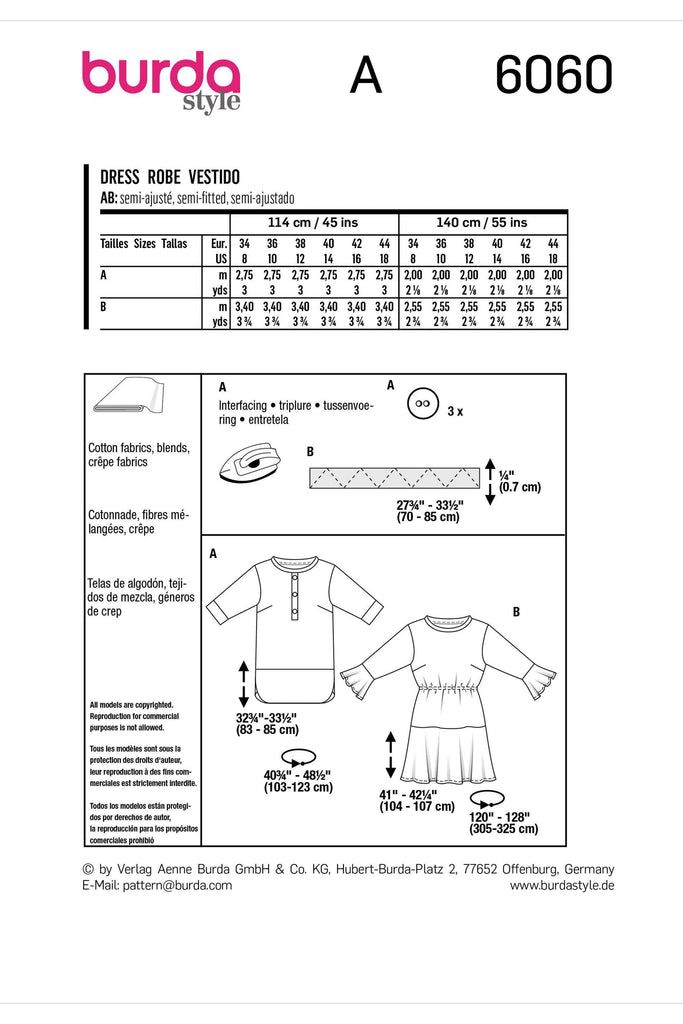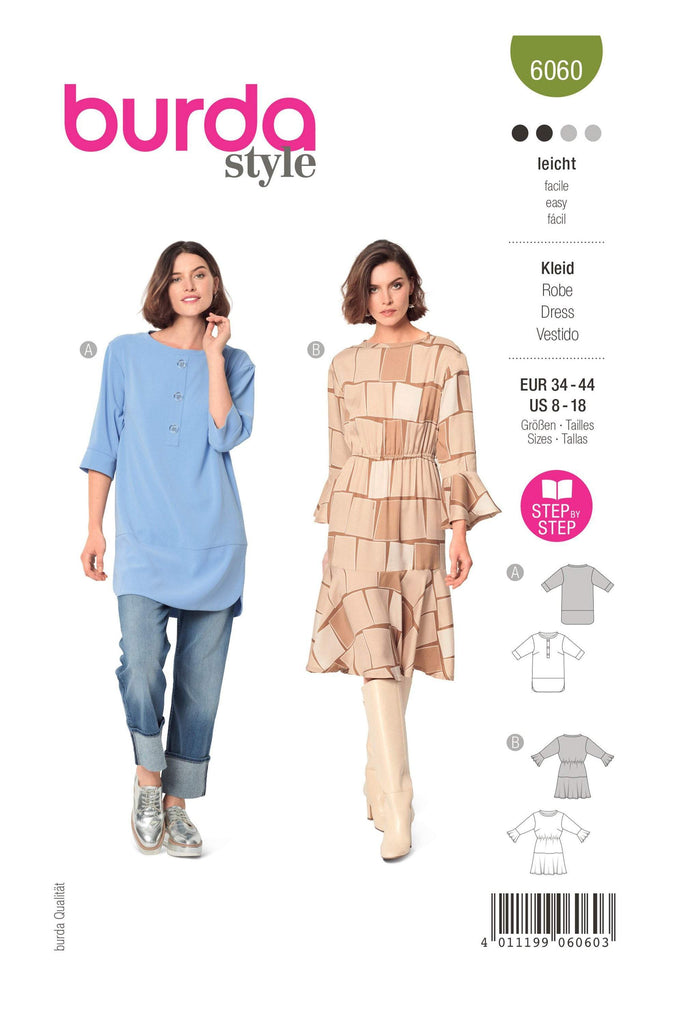 Burda - 6060 Tunic Top with Bands / Dress with Flounces and Elastic Waist