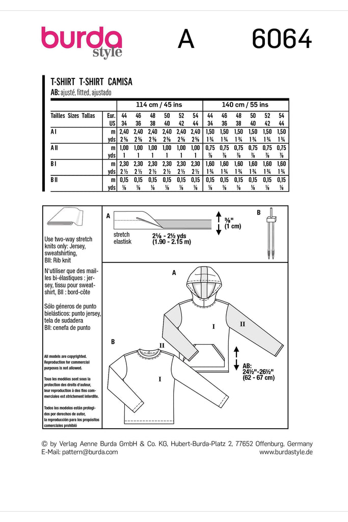 Burda - 6064 Classic Sweatshirt with Hood or Neckband