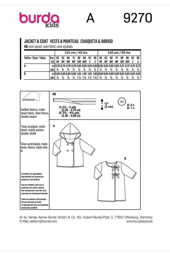 Burda - 9270 Hooded Jacket, Coat with Tie Bands