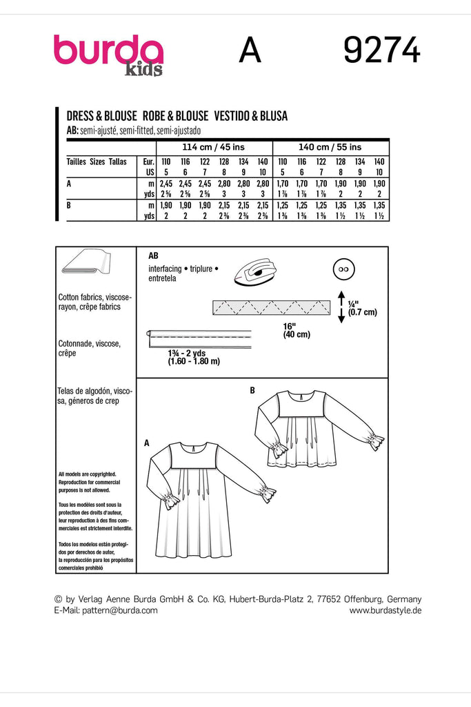 Burda - 9274 Dress, Blouse with Yoke - Loose Drape