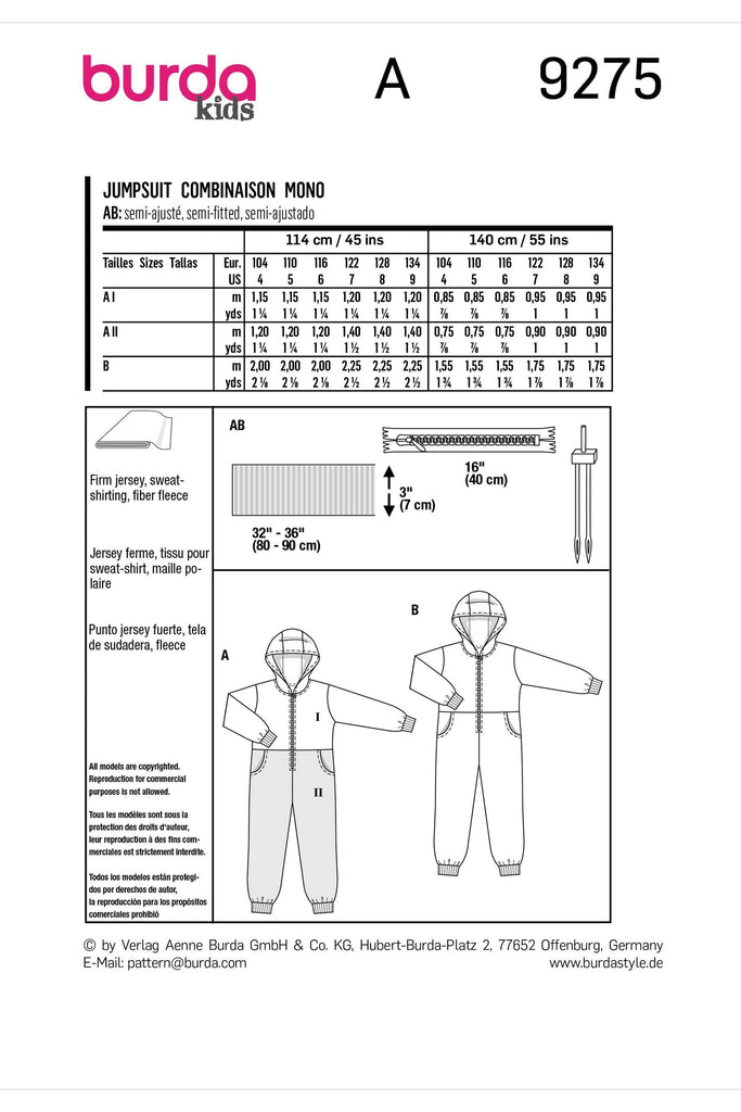 Burda - 9275 Hooded Jumpsuit / Onesie