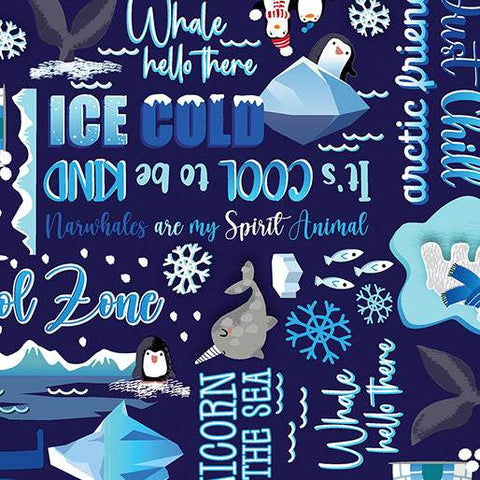 Arctic Friends Cool Words By Kanvas For Benartex Digitally Printed Navy