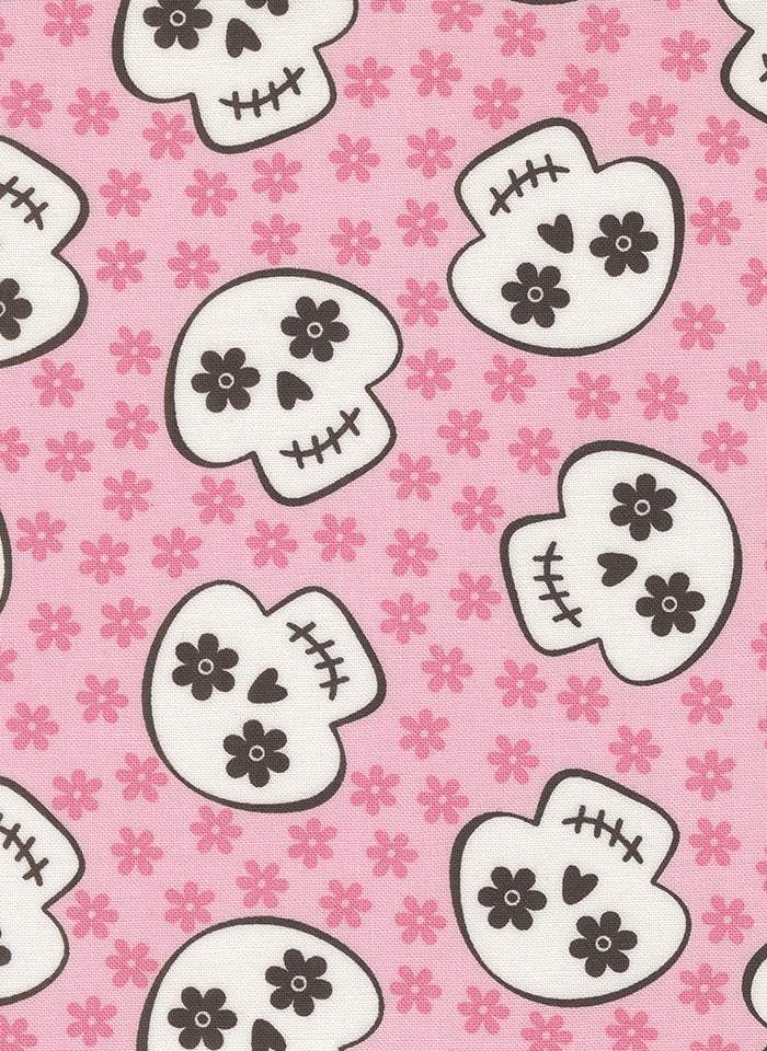 Fab Boo Lous Cheery Skulls By Me And My Sister For Moda Candy Pink