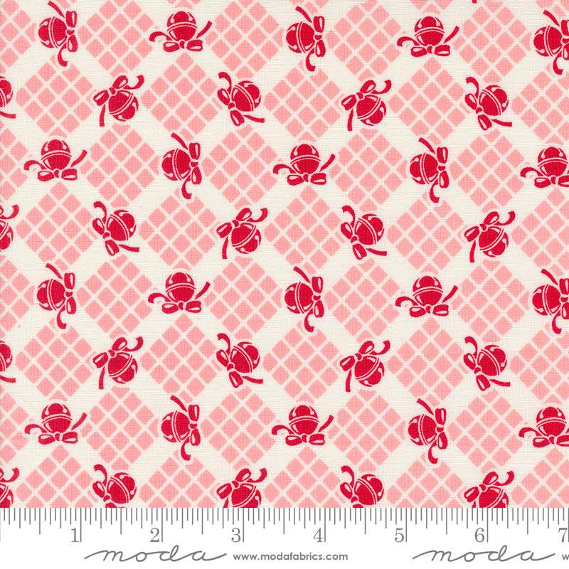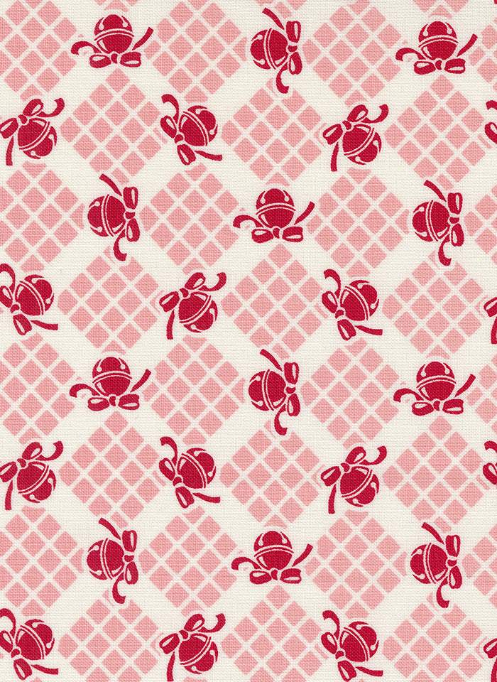 Kitty Christmas Bells and Checks By Urban Chiks For Moda Cheeky Pink