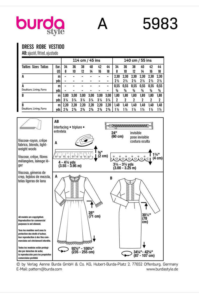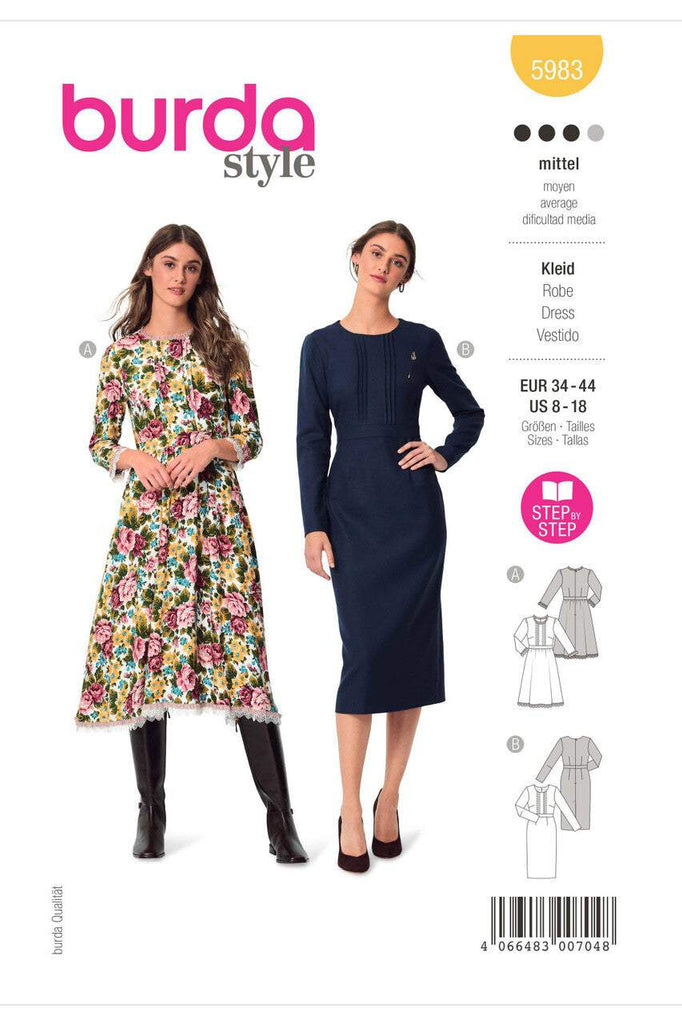 Burda - 5983 Ladies Dress with Wide or Narrow Skirt
