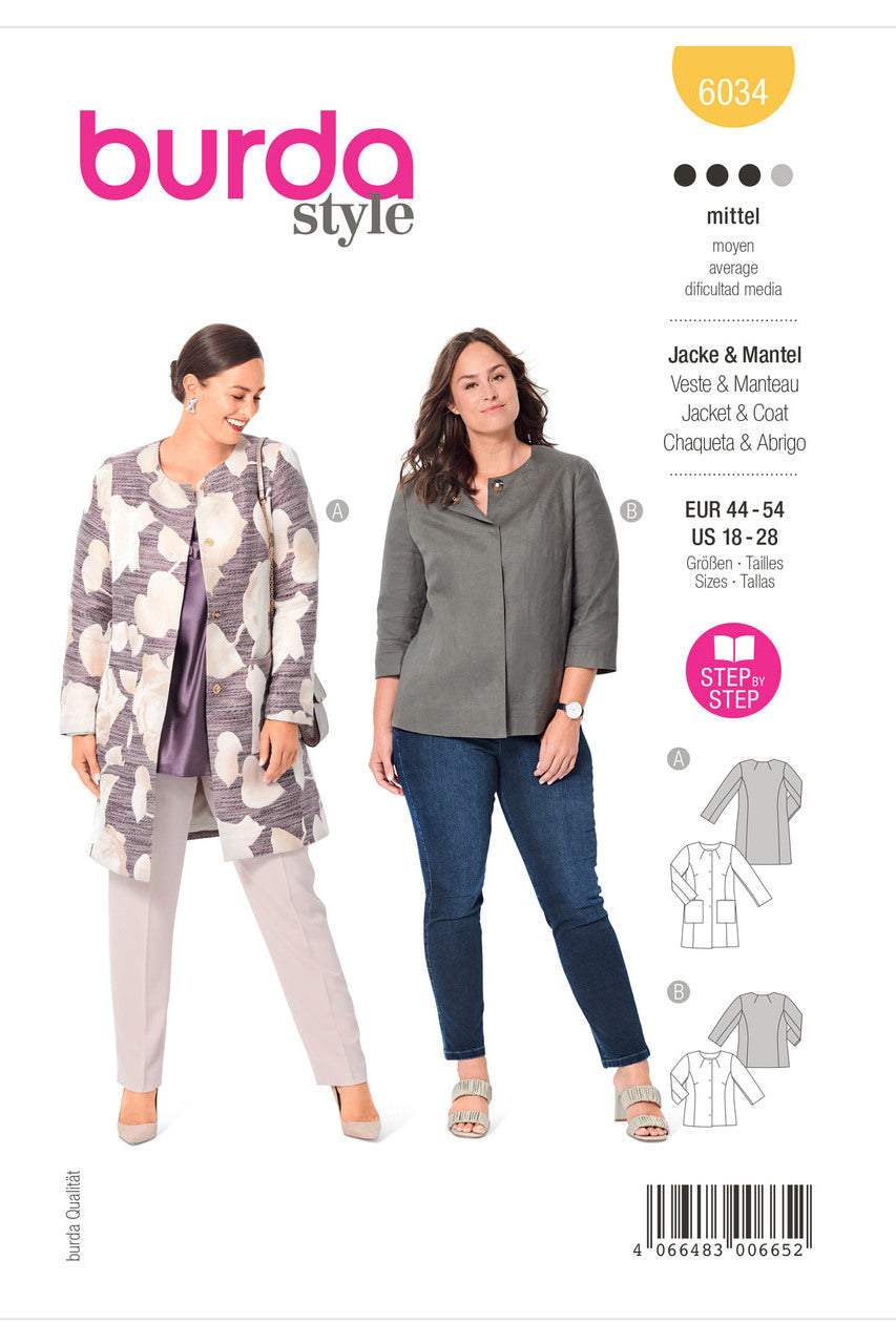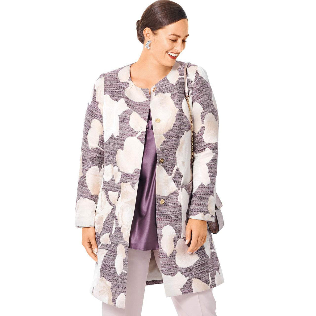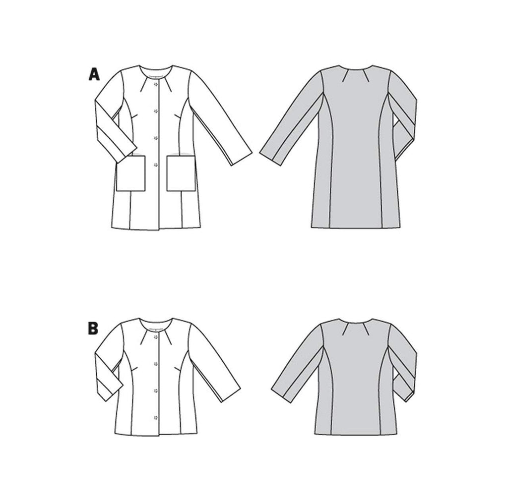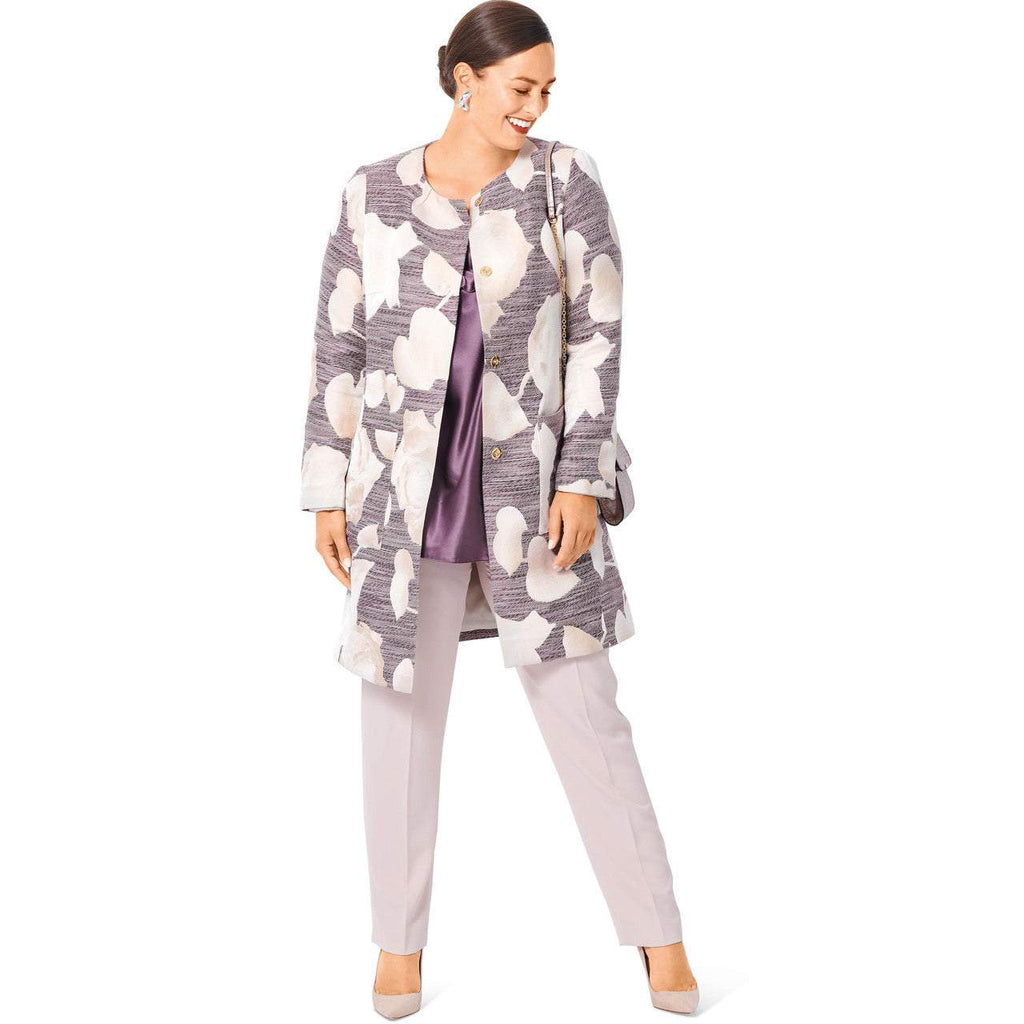 Both the coat and jacket are collarless. Panel seams and two-piece sleeves complete the look. Wear it inside or outside to always be well dressed. Fabric: Wools, jacquard, bouclé.