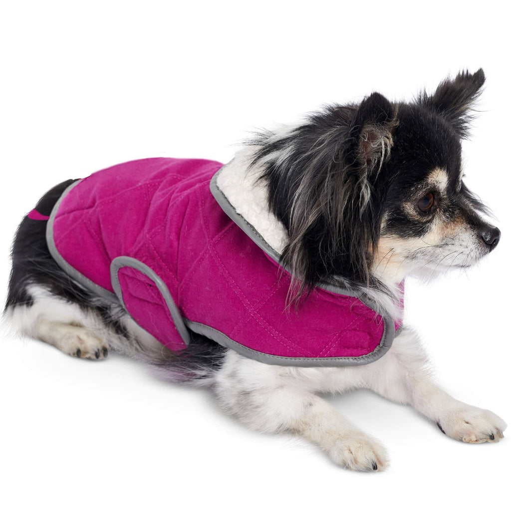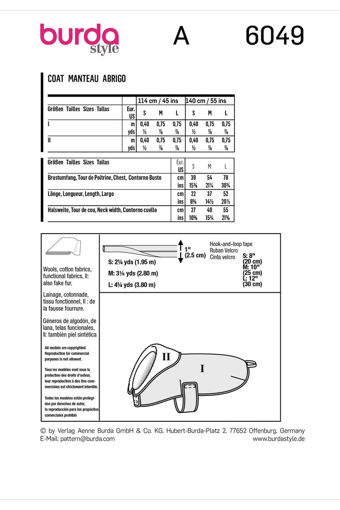Let your pet step out in style with this dog coat. The well thought out design allows ease of putting on and taking off. The coat will keep your darling wonderfully warm in spite of the cold weather. Fabrics: Wools, cotton fabrics, functional fabrics, also faux fur for fabric II.