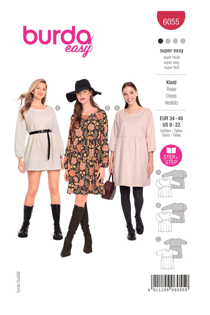 Casual and comfy - these loose dresses are right on trend this season. They feature a high set skirt. Let a fabulous print stand out. The sleeve length can be varied. Fabrics: Cotton fabrics, blends, jacquard, crêpe fabrics.