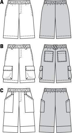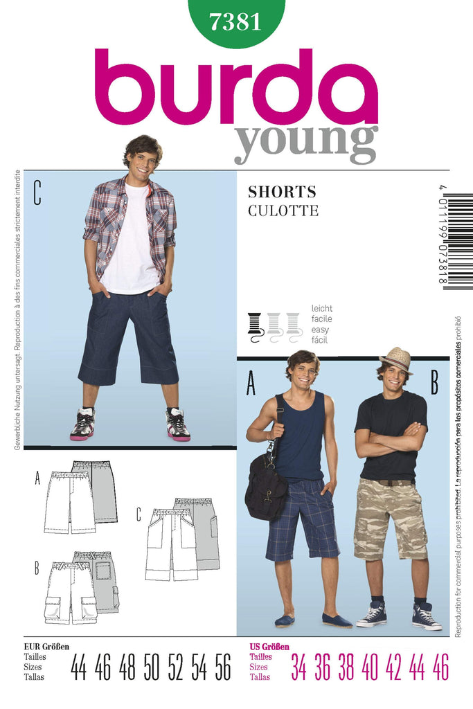 These Men's shorts are great for leisure wear, vacation and the beach. Sew in a solid colour, plaid, hawaiian print, or camouflage fabric—all sure to be a hit. Featuring comfortable in-seam pockets, patch pockets or bellows pockets.