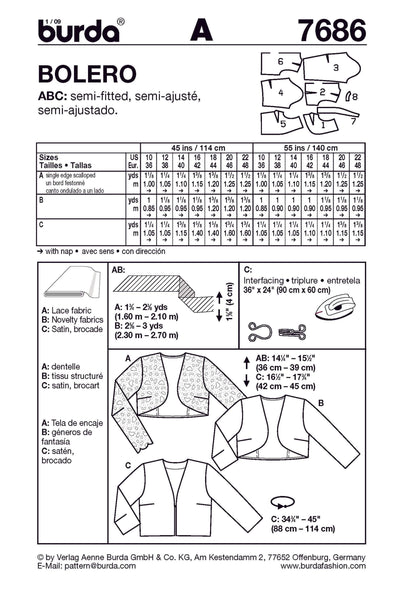 Whether with long or three-quarter length sleeves, made of precious lace or brocade, you are right on the mark with a bolero and waisted jacket. An excellent supplement for sleeveless evening gowns or bridal wear.