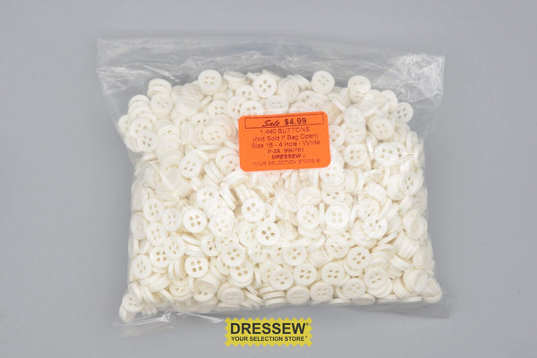 Bulk Buttons - 10mm (3/8") Size 16 - 4 Hole - White