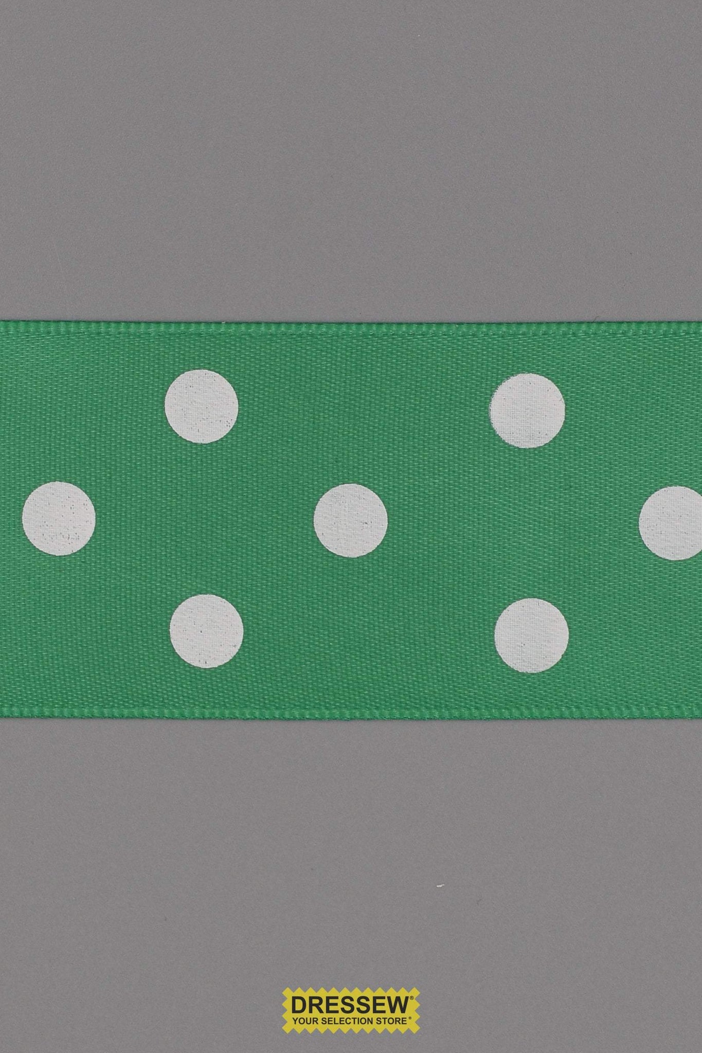 Polka Dot Ribbon 38mm (1-1/2") #9 Green / White