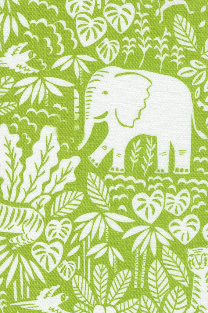 Jungle Paradise Elephants by Stacy Iest Hsu for Moda Lime / White