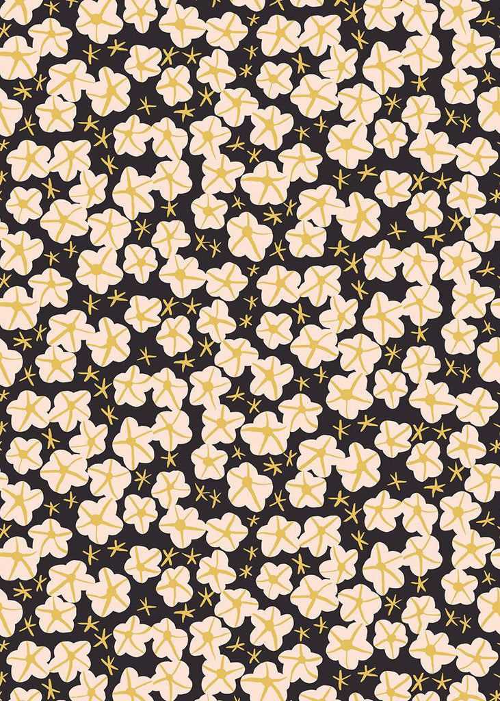 This collection is inspired by Kim Kight’s newest hobby: birding. Since last year, she has taken up the hobby in earnest. When she went on her first bird walk, it felt like a fairy realm was unlocked, and she found a deep well of inspiration. The Migration and Canopy prints were inspired by spring migration, Spark Bird has some popular backyard birds of North America people could identify, and Whippoorwill depicts the nocturnal birds that call through the night during spring and summer. The colors are so whimsically vintage, and the floral supporter prints are so vibrant and stand out on their own as well.