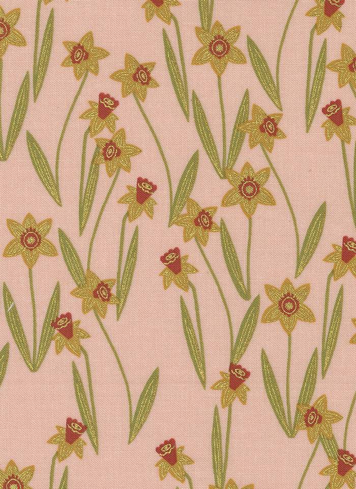 Bee Garden Darling Daffodils By Gingiber For Moda Rose / Metallic Gold