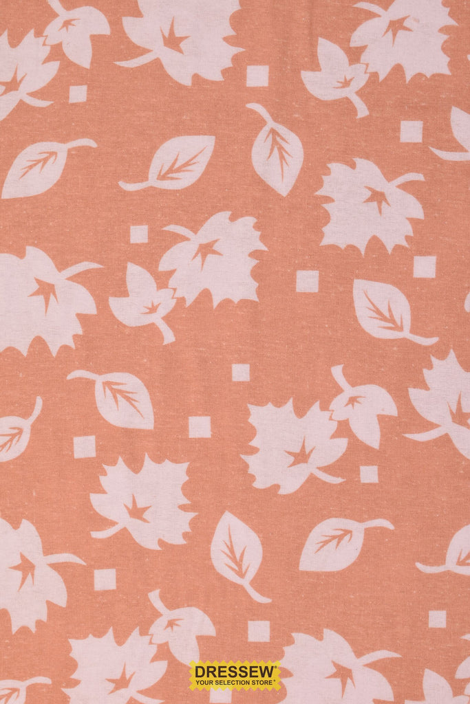 Leaves Lightweight Brushed Cotton Dark Peach / White